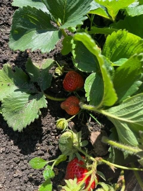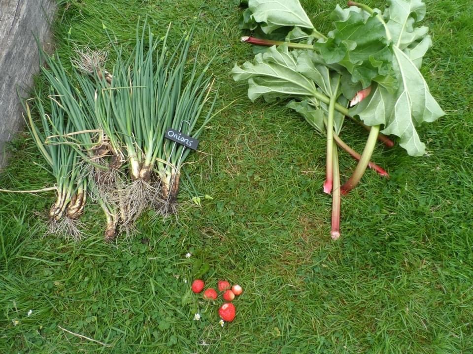 This term we've had fun harvesting our winter onions and some spring rhubarb. We also picked our first of many strawberries.