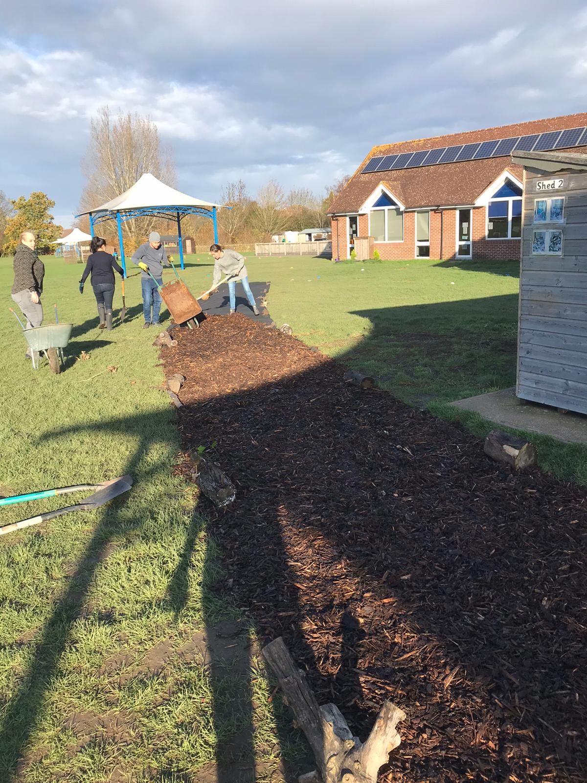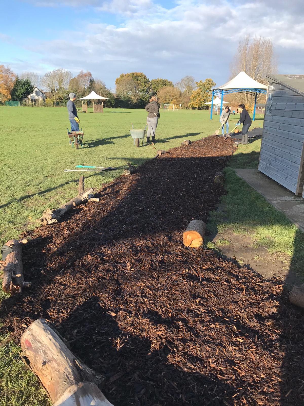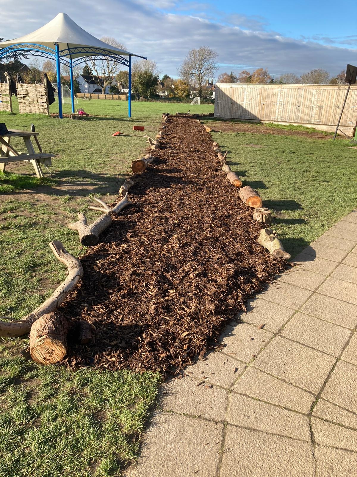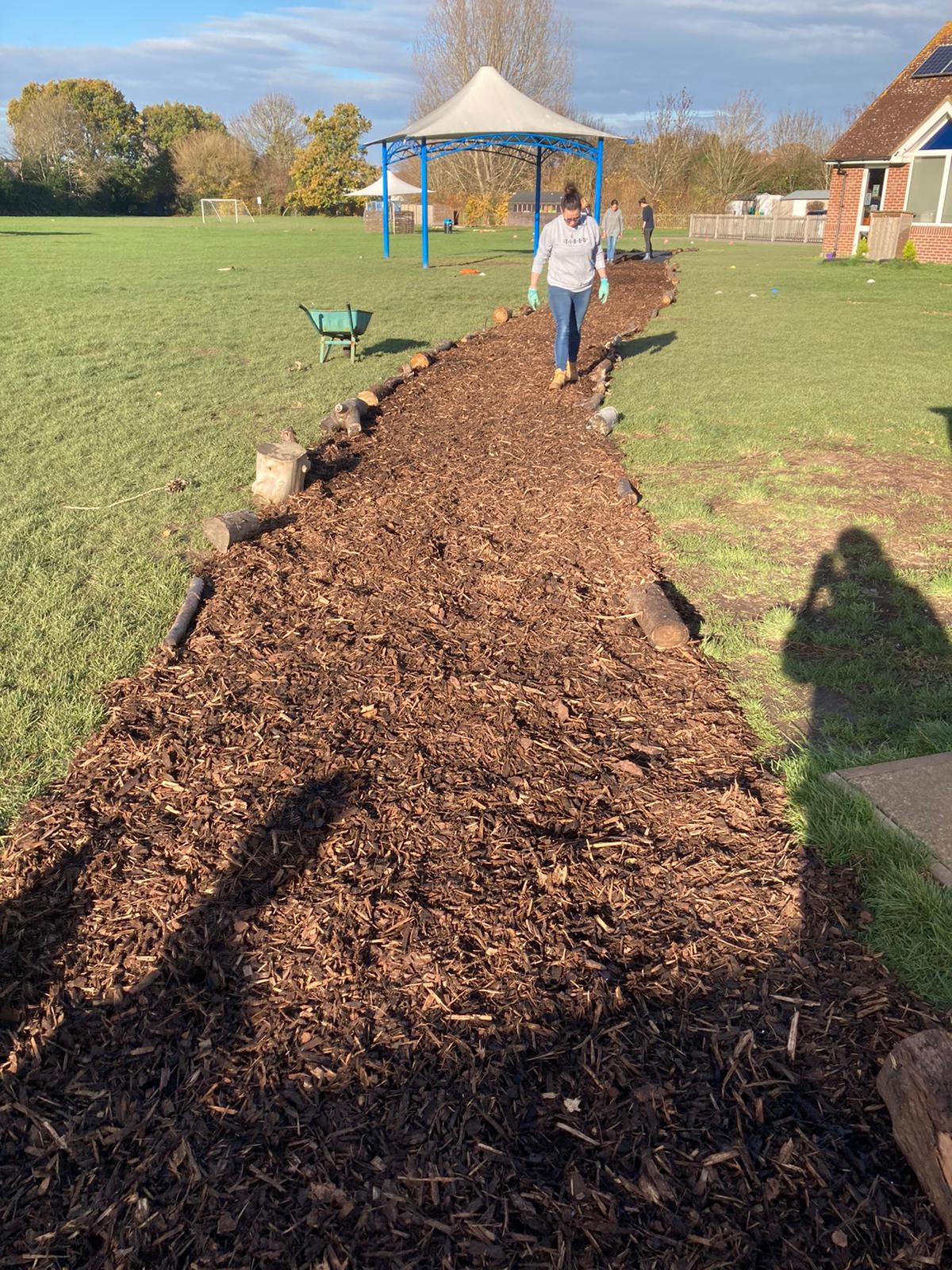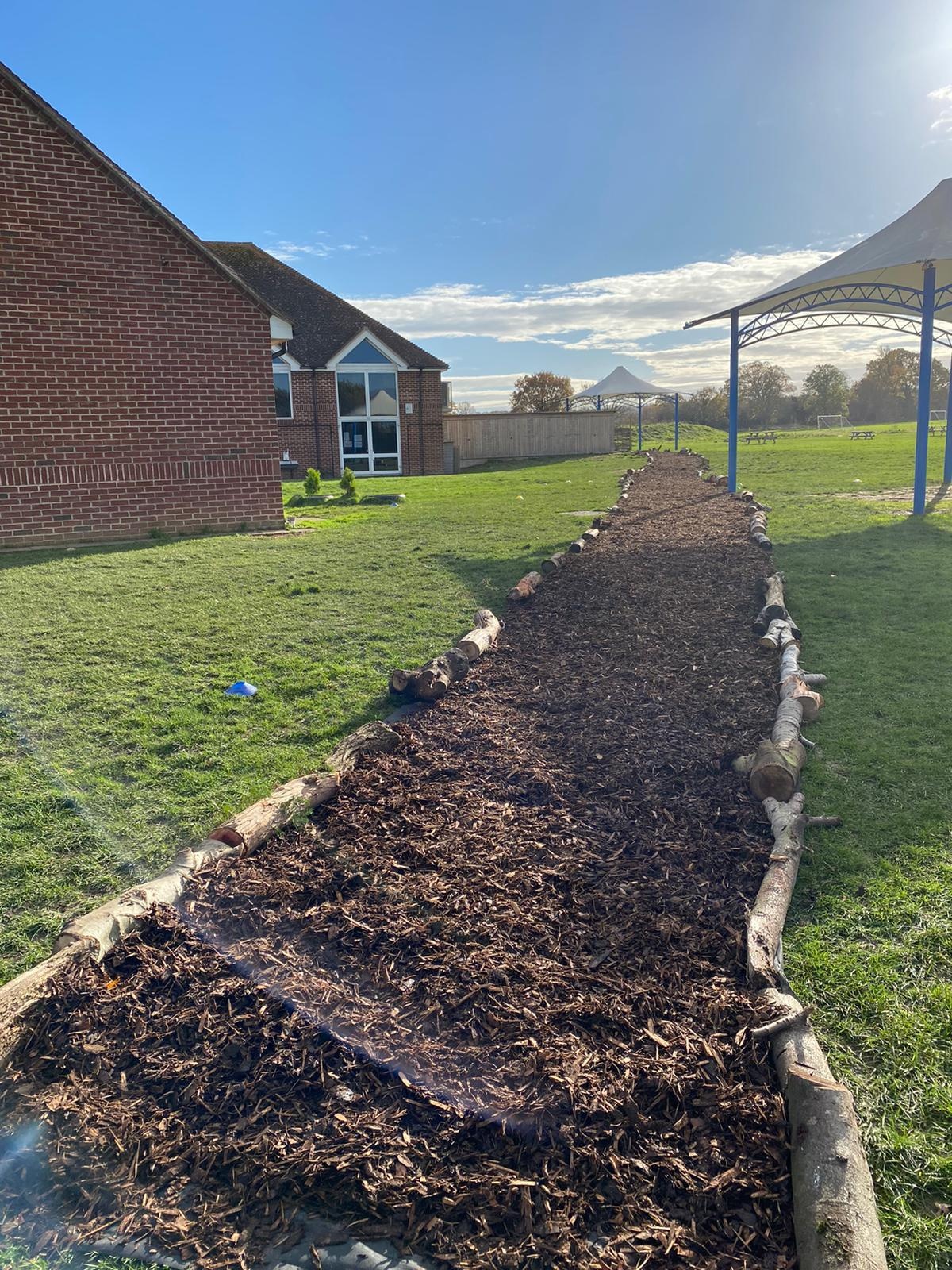 As a response to social distancing during the COVID-19 pandemic, the school now operates a one way system around the building and across the school field. In November 2020, the PTA funded and created a bark pathway across the field to easier access across the field especially during the muddy, winter months! We opted for bark because it's relatively inexpensive, quick and easy to lay and an environmentally friendly option.